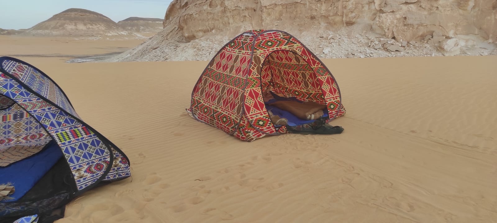 after breakfast we resume our exploring of white desert, we drive to visit aqapat desert way area then we drive to karaween dunes then from there we arrive to the magic spring where we will have our lunch after lunch we drive to make our camp in the dunes, dinner and spending the night.